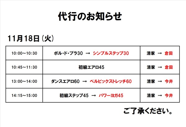 HOME»新着情報»代行のお知らせ(11月13日・11月14日・11月18日)