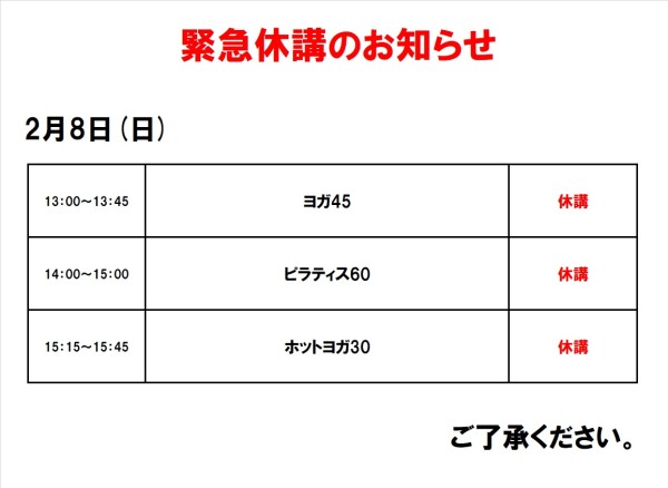 緊急休講のお知らせ(2月8日)