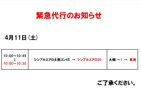 緊急代行のお知らせ(4月11日)